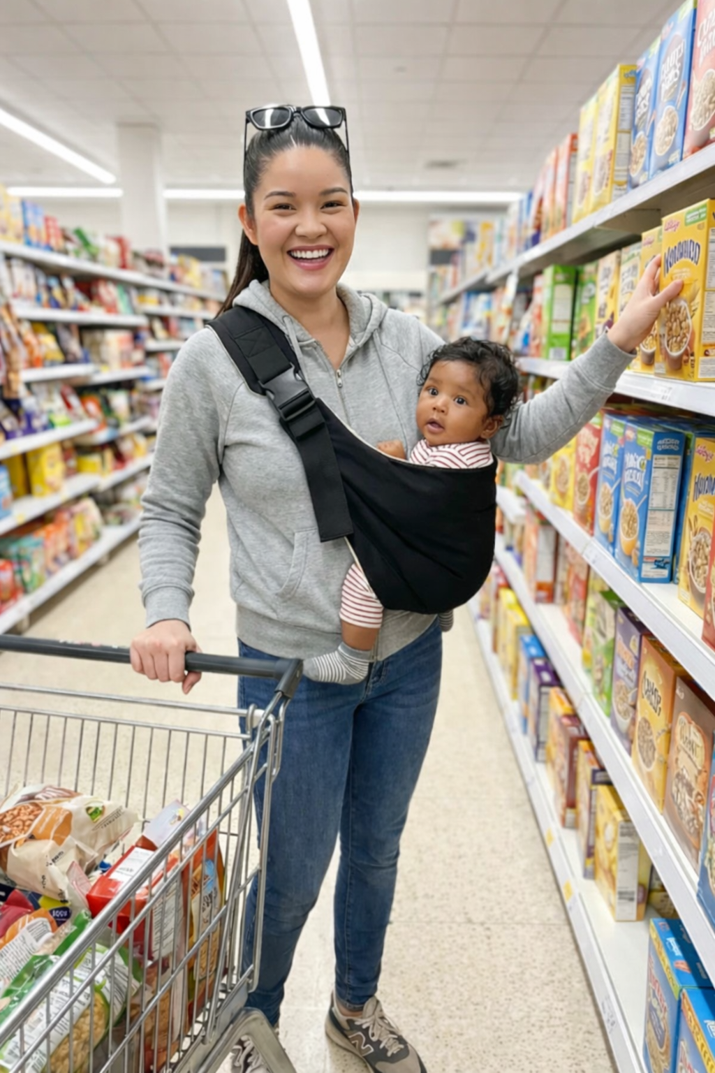 Grocery run? No problem. The Bubu Sling keeps your little one happy and close — while you push the cart, grab what you need, and actually get things done.